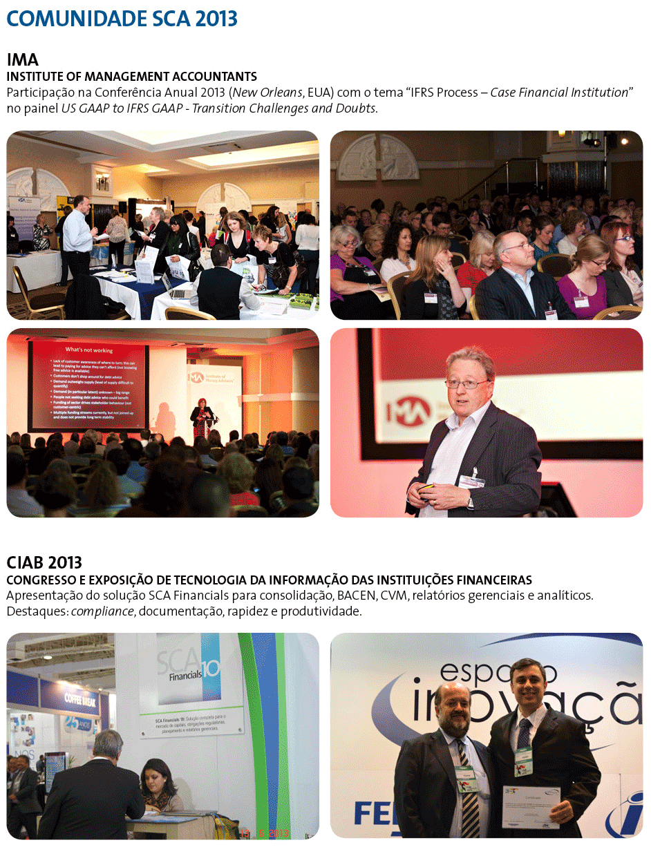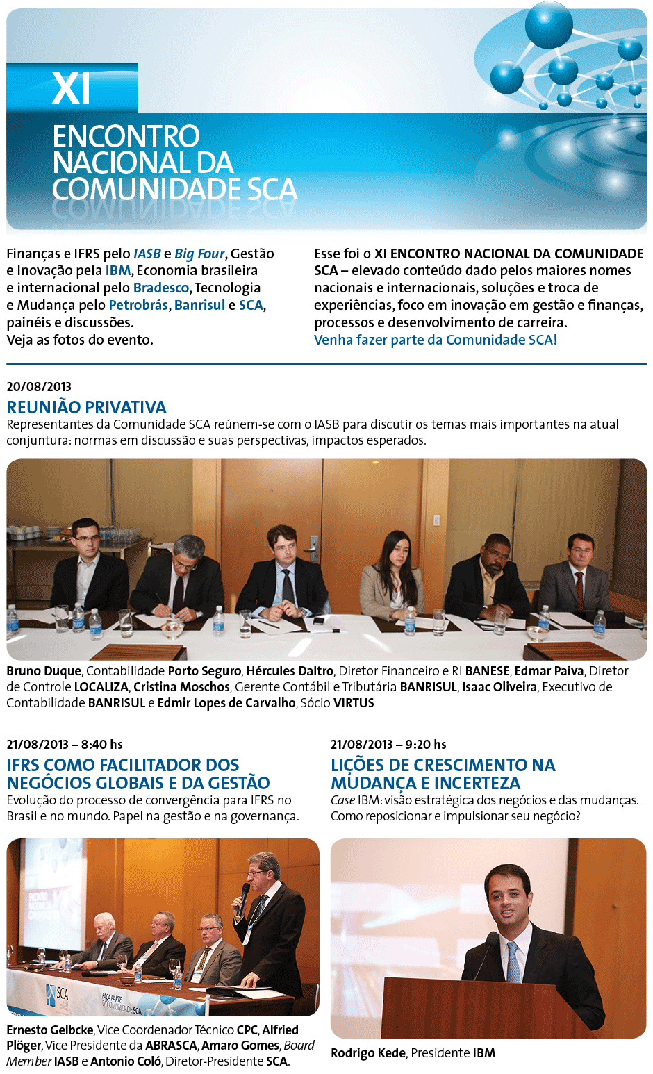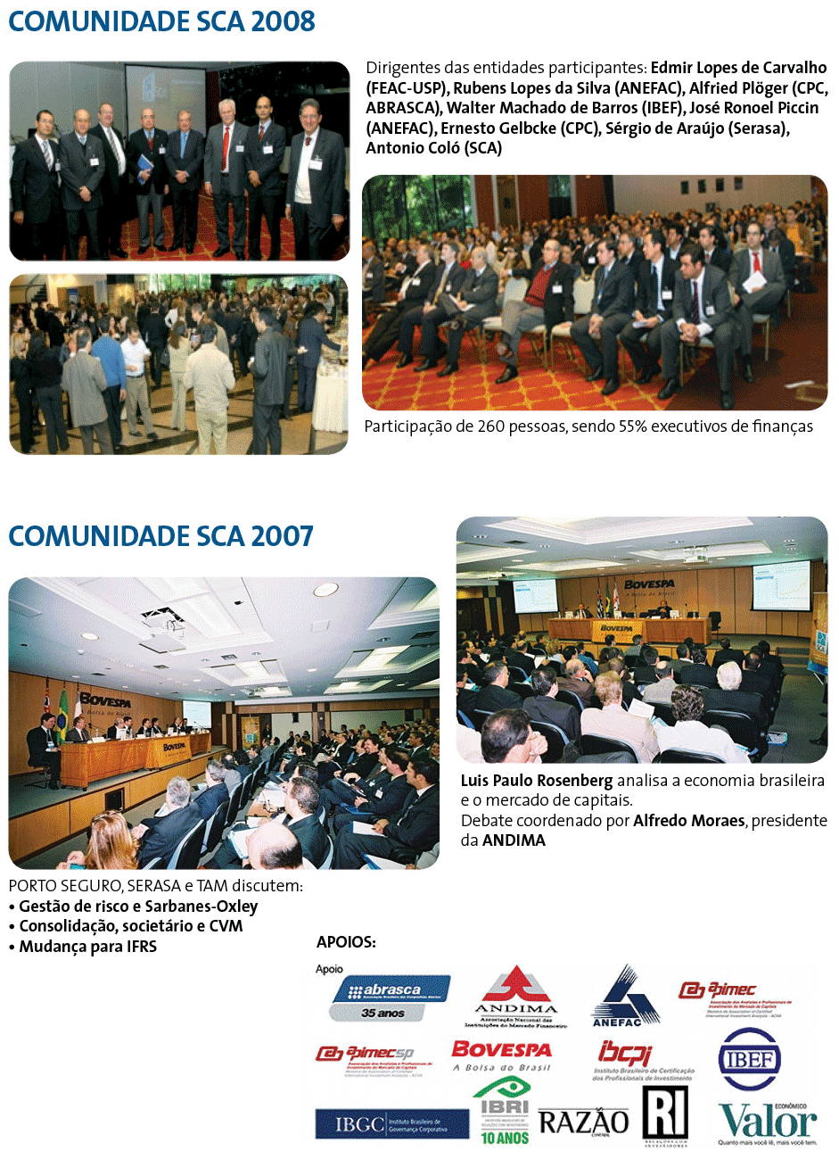 Nessa pÔgina, você verÔ o registro desses encontros como, também, dos Encontros Nacionais da Comunidade SCA, realizados nos últimos anos, que contaram com a presença dos principais atores do cenÔrio financeiro nacional.